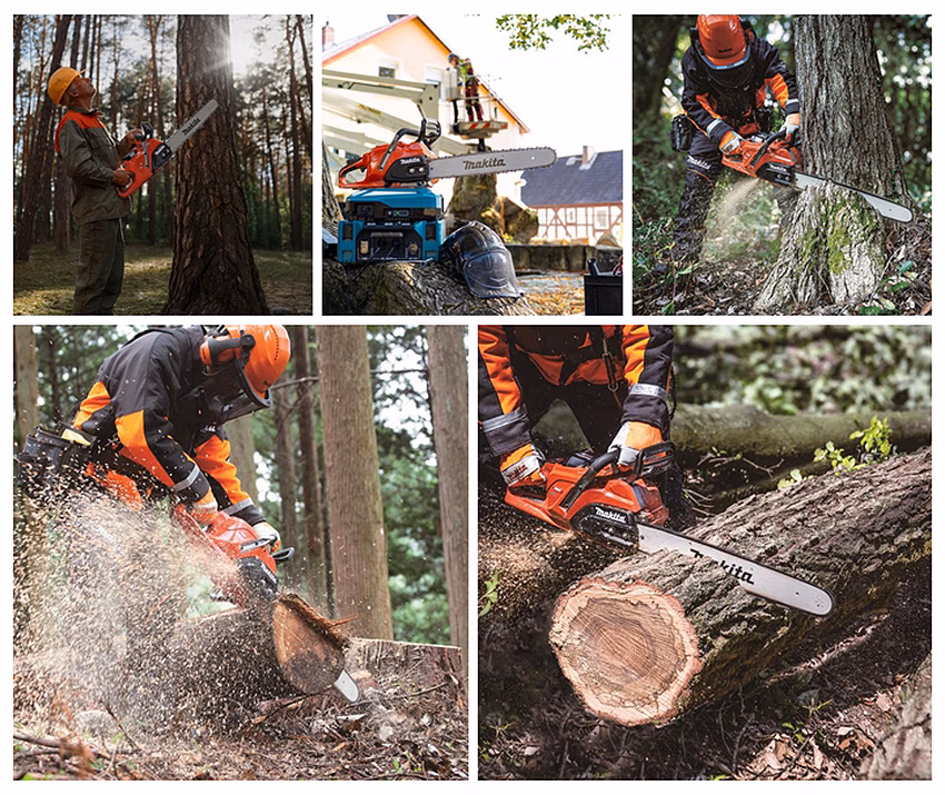 Makita erweitert das Akku Kettensägen Sortiment um eine weitere Akku Sensation mit einer maximalen Ausgangsleistung von beeindruckenden 2.800 W.