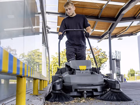 Professionelle Kehr und Kehrsaugmaschinen für den Innen und Außeneinsatz. Von handgeführten Geräten bis zu Aufsitzmaschinen für große Flächen in Industrie und Kommune.