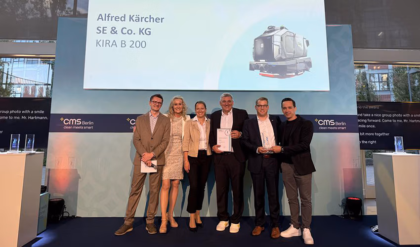 Kärcher gewinnt Purus Innovation Award der Messe CMS 2025 Winnenden, September 2025 – Der neue Scheuersaugroboter KIRA B 200 von Kärcher wurde auf der Reinigungsfachmesse