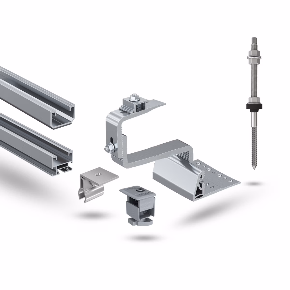 Universelle, vormontierte Klemmen aus Aluminium in Schwarz oder Silber sichern PV-Module verschiedener Stärken, je nach Ausführung als Mittel- oder Endklemme. Fischer Dachhaken aus Aluminium ermöglichen je nach Typ 3- oder 4-fach verstellbare Führung, flexible Ausrichtungen zur Anpassung an nahezu alle Dächer und unterschiedliche Größenmodelle abhängig von den jeweiligen Ziegeltypen. Damit lassen sich auch größere Toleranzen überbrücken, etwa bei Dächern im Altbau.