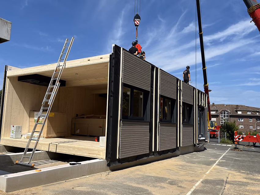 Holz- und Modulbau rücken seit einigen Jahren immer weiter in den Fokus der Baubranche. Zunächst als Randthema abgetan, ist der Marktanteil an Modulbauprojekten in den letzten Jahren kontinuierlich gestiegen. Und das aus guten Gründen: Durch die Vorfertigung der Module in ortsunabhängigen und witterungsgeschützten Hallen kann zeitgleich mit den Arbeiten vor Ort, etwa der Fundamentlegung, begonnen werden. So kann die gesamte Projektzeit um bis zu 70 % verkürzt werden. Auch unter wirtschaftlichen und nachhaltigen Gesichtspunkten kann die Bauweise punkten. Es entstehen weniger Abfall und Lärm, sowie Belästigung am Standort durch Schmutz wird auf ein Minimum reduziert. Module aus Holz bestehen zudem aus einem nachwachsenden, natürlichen Rohstoff, der CO2 bindet und bei hoher Stabilität eine leichte Bauweise ermöglicht. Häufig im städtischen Wohnungsbau eingesetzt, bietet der Holzmodulbau auch für Schulen schnelle und kostengünstige Lösungen.