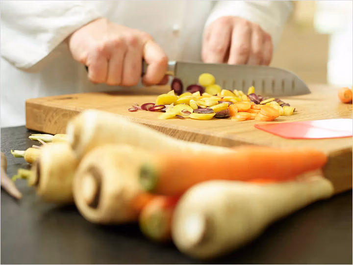 Neben Messern bietet Friedr. Dick praktisches Küchenzubehör wie Schneidbretter, Messertaschen, Schürzen und Schutzhandschuhe. Ergänzende Werkzeuge runden das Angebot für den professionellen Küchenalltag ab.