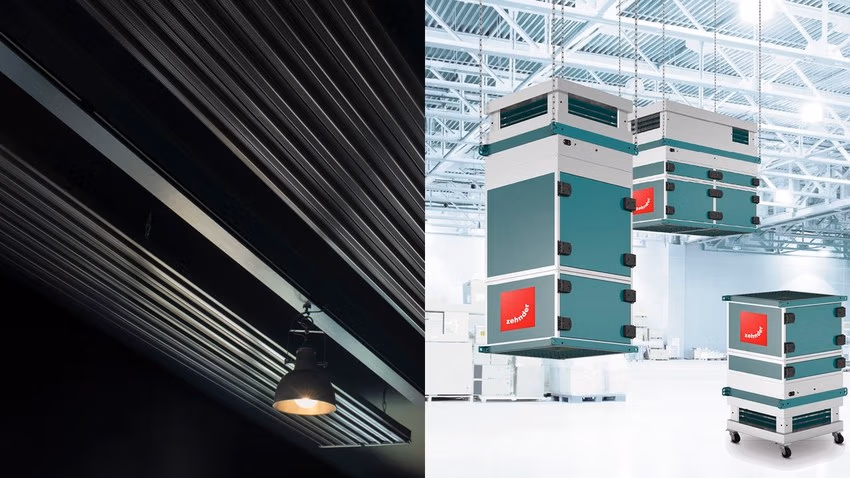 Gemeinschafts-Webseminar zu Zehnder Deckenstrahlplatten und Zehnder Industrieller Luftreinigung: Praxisnahe Einblicke in energieeffiziente Temperaturführung und saubere Hallenluft für ein gesundes, leistungsförderndes Hallenklima. © Zehnder Group Deutschland GmbH, Lahr