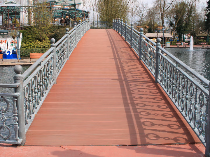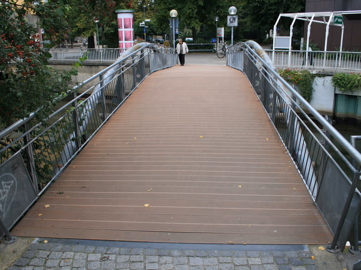 TRIMAX®-Profile eignen sich als Brückenbelag für Fußgänger- und Radwegbrücken. Das verrottungsfeste Material ist rutschhemmend, barfußfreundlich und hält dauerhaft ohne Nachbehandlung.